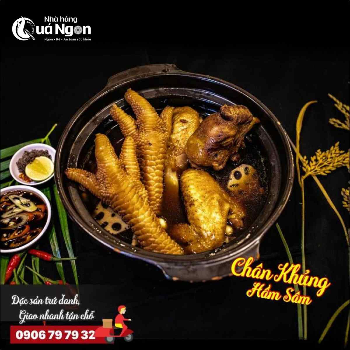 – Chân Hầm Sâm: Vị thơm đặc biệt có được từ chân gà hòa tan cùng sâm khi ăn thì vừa giòn, dai dai cảm giác rất khác lạ. Ăn kèm với xà lách xoong, tần ô, ngải cứu.