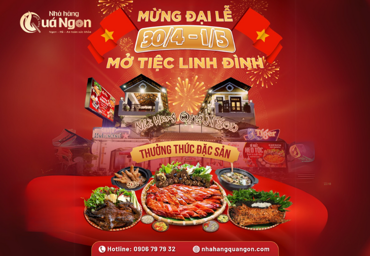 Chào mừng Đại lễ Giải phóng miền Nam thống nhất đất nước 30/04 và Quốc tế Lao động 01/05! Hòa chung không khí tưng bừng của cả nước, Nhà hàng Quá Ngon tại Sài Gòn hân hạnh mang đến cho quý thực khách trên khắp mọi miền Tổ quốc một trải nghiệm ẩm thực đặc sắc, xứng tầm với những ngày lễ trọng đại này. Nếu bạn đang tìm kiếm một địa điểm lý tưởng để mở tiệc linh đình mừng đại lễ tại Sài Gòn, Quá Ngon chính là điểm đến không thể bỏ qua.