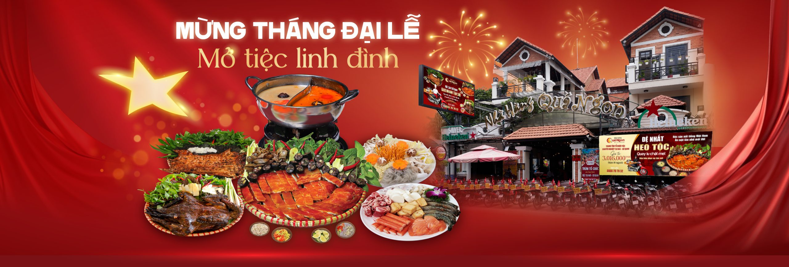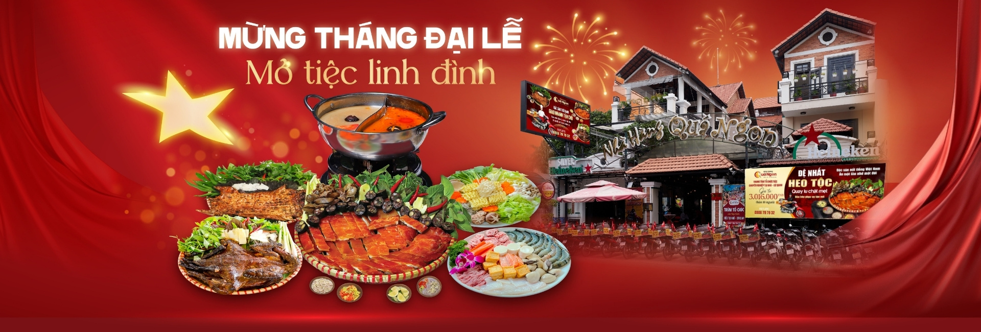 💥 Nhà hàng Quá Ngon là thương hiệu nổi tiếng hơn 16 năm nay với đặc sản ĐỆ NHẤT HEO TỘC QUAY LU CHẶT MẸT và món LẨU VUA trứ danh. Ngoài hai món này, Nhà hàng còn có 14 món hải sản, đặc sản hấp dẫn khác. Chi tiết các món ăn, giá cả, cách thức phục vụ… Quý khách vui lòng click vào từng món ăn để xem thông tin chi tiết.