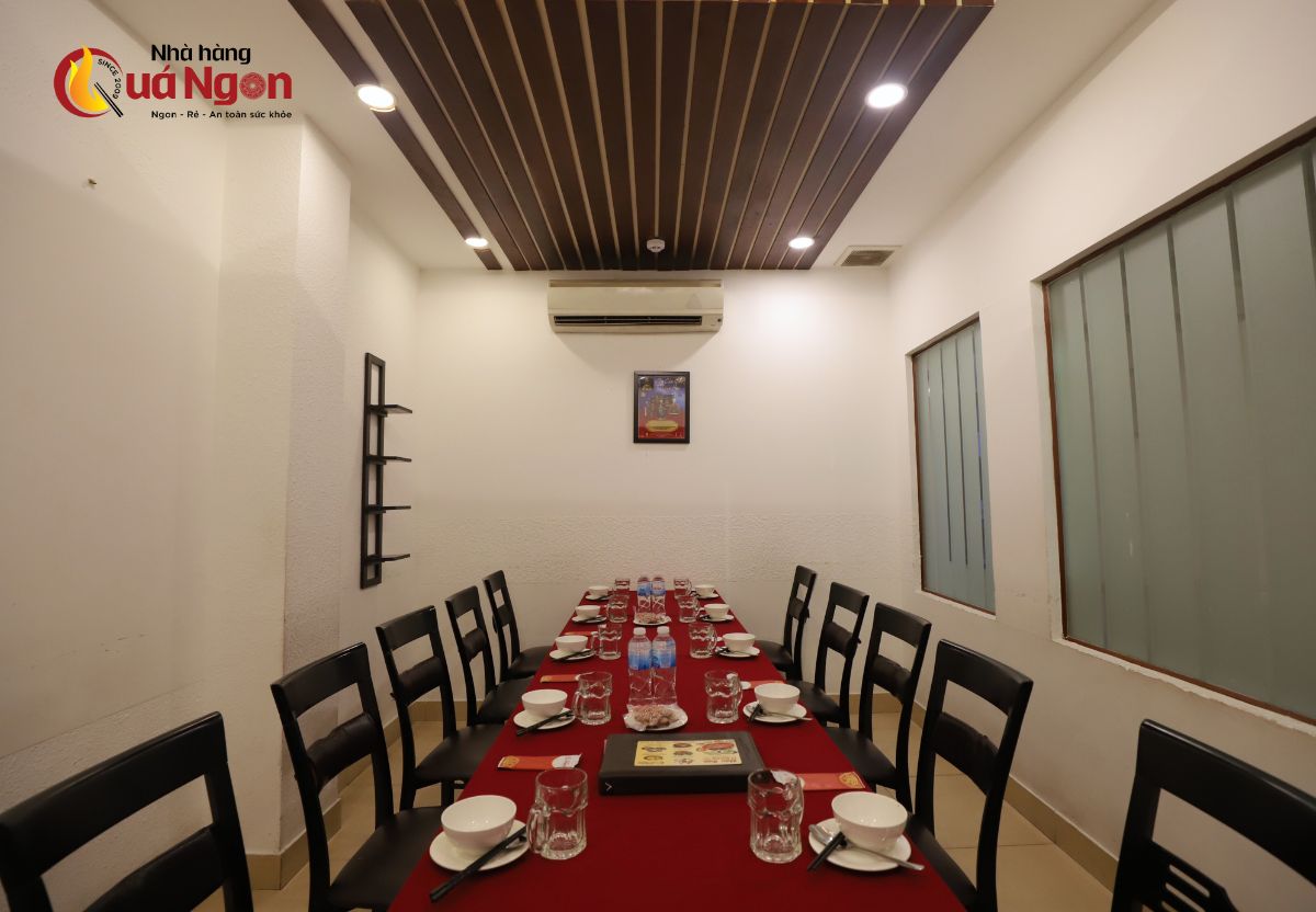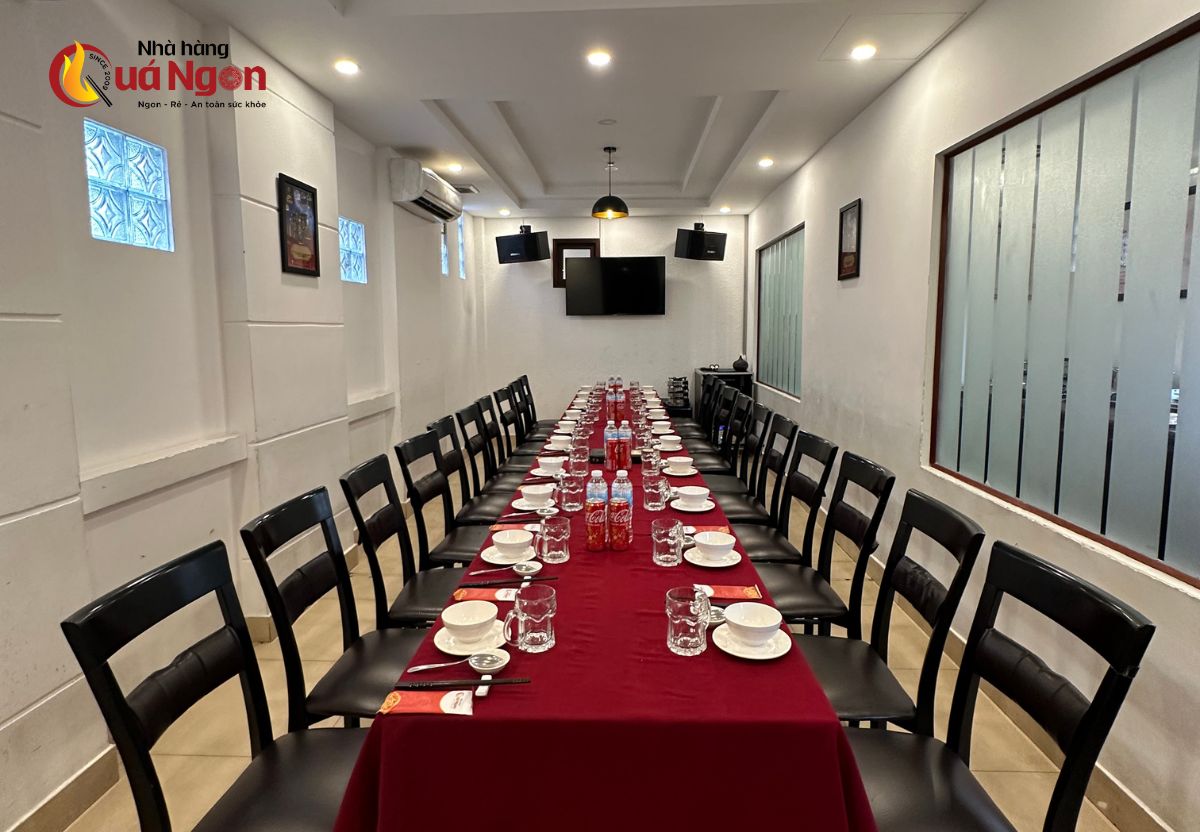• Riêng Tư Tuyệt Đối: Nhà hàng Quá Ngon sở hữu hệ thống Phòng VIP sang trọng với sức chứa đa dạng từ 4 đến 100 khách. Mỗi phòng được thiết kế biệt lập, đảm bảo không bị làm phiền bởi môi trường bên ngoài.