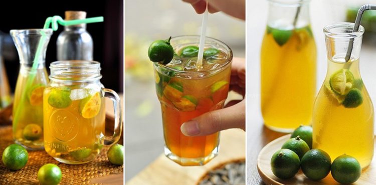 Nguyên liệu: một nhúm trà xanh khô, 2-3 quả tắc khô, 1 quả quất tươi, 2 tách nước lọc.