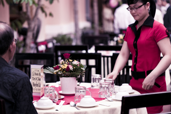 Không gian tĩnh lặng, trang nhã phù hợp cho 1 buổi tiệc chay nghiêm trang
