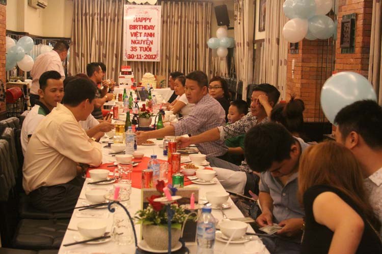 Ảnh tiệc chúc mừng sinh nhật lần thứ 35 của anh Việt Anh , cám ơn anh đã đến nhà hàng quá ngon tổ chức tiệc sinh nhật . Nhà Hàng Quá Ngon Chúc Anh mạnh khoẻ, luôn thành công trong cuộc sống
