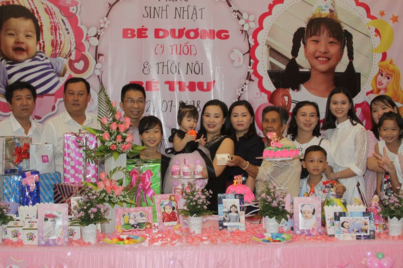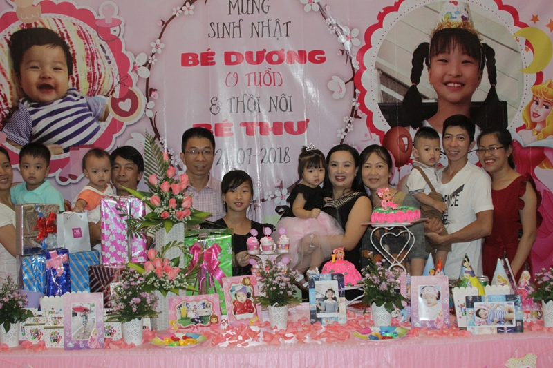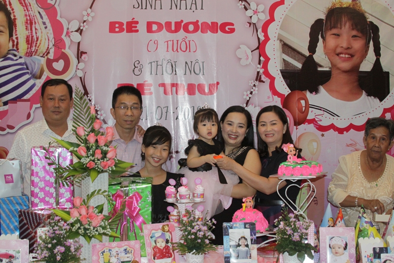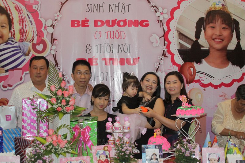 Ảnh Tiệc sinh nhật của Bé Dương ( 9 tuổi ) và thôi nôi bé Thư . Nhà Hàng Quá Ngon Chúc hai chị em luôn vui, khỏe và chăm ngoan, mau ăn chóng lớn vâng lời ông bà , cha mẹ con nhé! Chúc gia đình con mãi luôn hạnh phúc!
