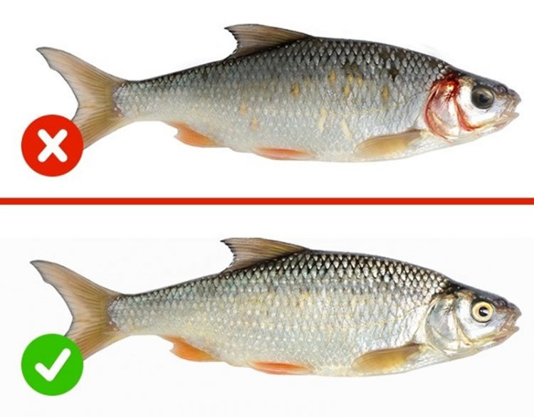 Nhận biết cá tươi: Cá còn tươi sẽ có mang màu đỏ tươi, mắt không bị đục. Da của cá tươi có màu ánh kim tự nhiên, các lớp vảy không bị bong dễ dàng.