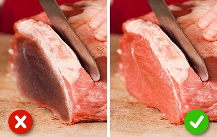Thịt: Khi chọn thịt, bạn nên dùng ngón tay ấn vào miếng thịt. Thịt còn tươi sẽ có độ đàn hồi và dấu tay của bạn nhanh chóng biến mất. Miếng thịt có màu tối khác thường, viền trắng nghĩa là thịt chứa chất bảo quản độc hại. Ngoài ra, bạn có thể dùng tờ giấy lau nhẹ miếng thịt. Nếu khăn giấy dính đầy nước và máu, thịt không còn tươi. Thịt tươi thường ít nước và không có máu rỉ ra.