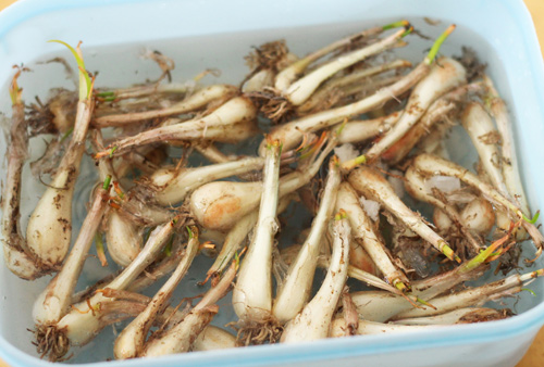 Bước 3: Cuối cùng là vớt kiệu ra, xả chúng vài lần với nước cho sạch. Sau đó bạn pha nước phèn chua rồi cho kiệu đã rữa vào. Đem kiệu phơi nắng trong một ngày cho hơi héo. Sau khi bạn phơi xong, sơ chế lại kiệu thêm lần nữa, lột bớt màng kiệu bọc bên ngày và phần rễ khô còn sót lại khi chê biến.