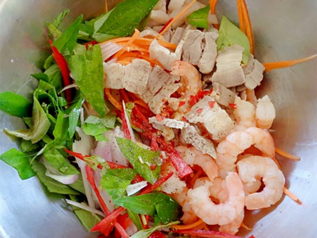 - Tránh làm Gỏi bị chảy nước bằng việc hãy bắt đầu trộn trước khi ăn. Trộn quá sớm sẽ khiến nguyên liệu không giòn, chảy nước kém bắt mắt