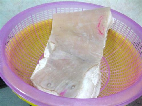 Bước 1: Rửa sạch miếng thịt, cho vào nước sôi chần, chủ yếu là chần mặt bì trong 3 – 5 phút.