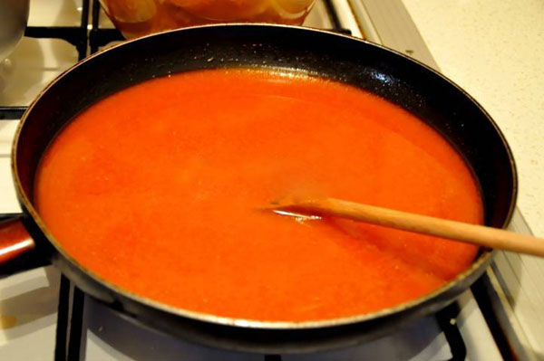 Bước 6: Bắt chảo lên bếp, phi tỏi thơm rồi cho nước luộc gà và nước tương vào nấu sôi