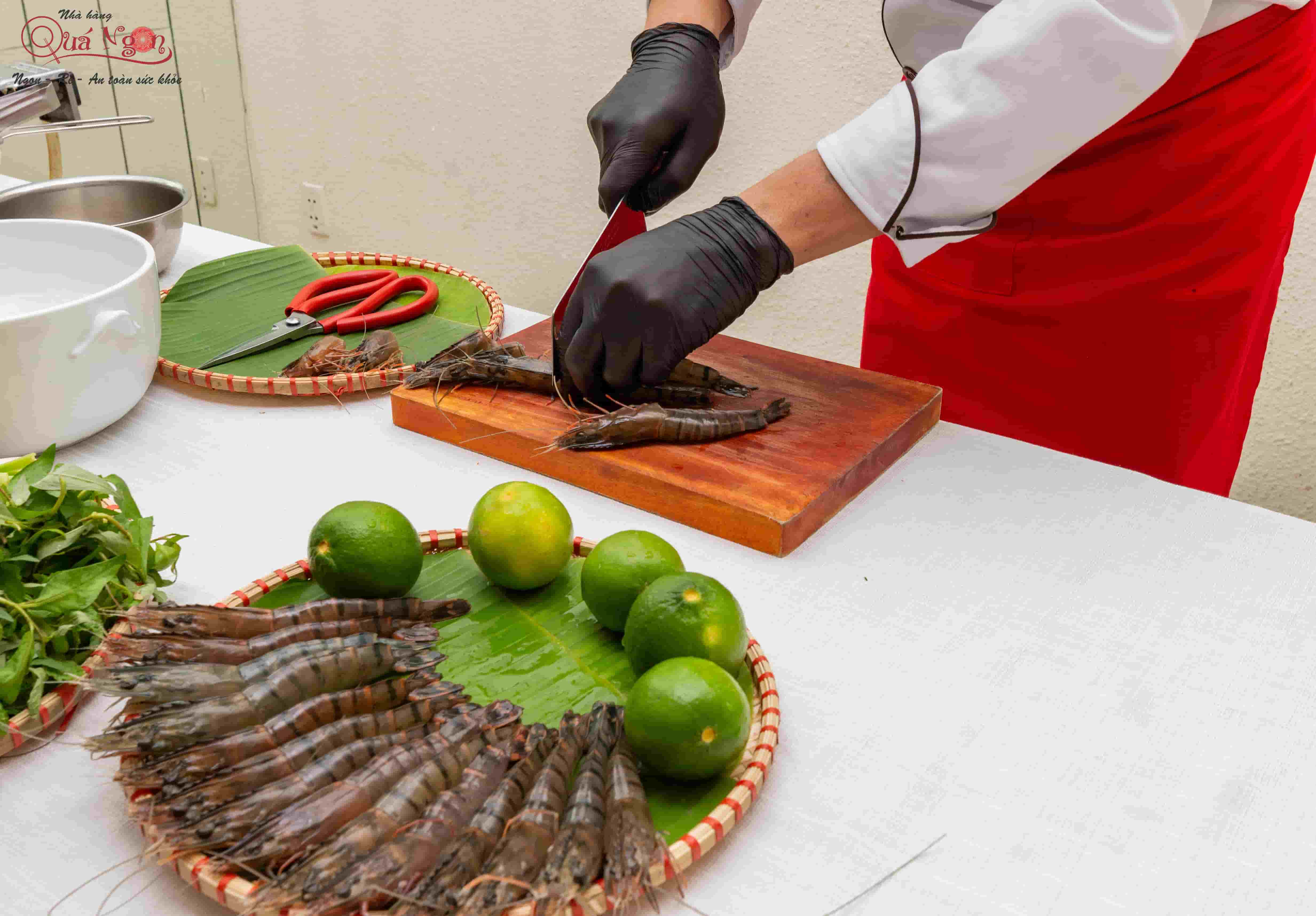 Tiếp theo, hòa tan hỗn hợp nước cốt chanh (khoảng 2 trái chanh) sau đó ngâm tôm vào khoảng 5- 10 phút sẽ giúp tôm tái lại, an toàn và ăn ngon hơn