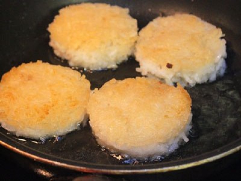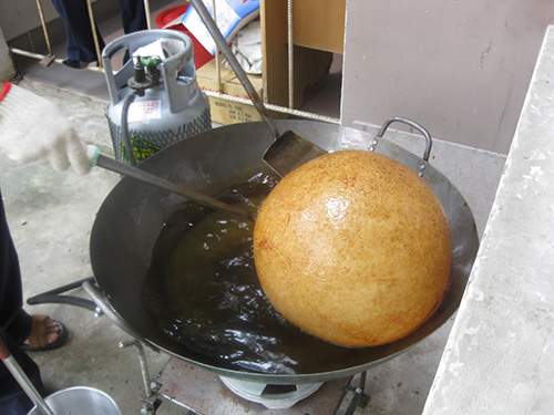 – Bỏ xôi vào chiên cho đến khi vàng đều lớp vỏ bên ngoài.