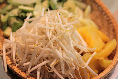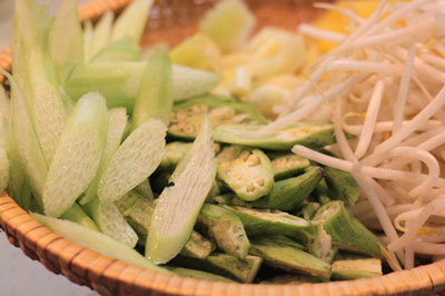 Bước 3: Bạc hà, đậu bắp, cần tây rửa sạch, cắt xéo.