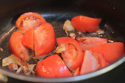 Bước 5: Bắt nồi lên bếp, cho vào 2 muỗng canh dầu ăn rồi phi hành tỏi cho thơm, sau đó cho cà chua và dứa vào xào trong 2 phút.