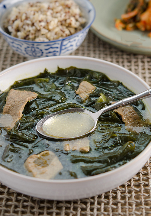 Rong biển là một trong những nguyên liệu cơ bản thường thấy trong các món ăn của Hàn Quốc, Nhật Bản bởi những đất nước được bao bọc giữa bốn bề đại dương là nơi dễ tìm thấy rong biển nhất, hơn nữa nó còn có nhiều tác dụng tuyệt vời như làm giảm huyết áp đối với người mắc bệnh cao huyết áp, giúp thải độc và giảm cholesterol trong máu. Canh rong biển thịt bò có vị ngọt tự nhiên rất vừa miệng, thịt bò mềm dai, trong khi rong biển thì giòn giòn hòa cùng nước canh nóng hổi, rất hấp dẫn.