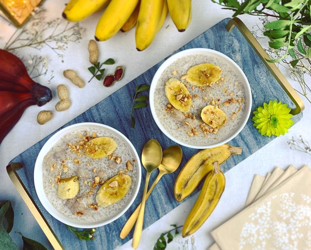 Chè chuối: Chè chuối bột báng là đặc sản nổi tiếng của người dân miền Tây. Món ăn là sự kết hợp độc đáo giữa các nguyên liệu chuối, nước cốt dừa, bột báng (loại bột được làm từ bột khoai mì)… Khi ăn, bạn sẽ cảm nhận được vị ngọt của chuối, beo béo, mặn mặn của nước cốt dừa, dai dai của bột báng. Ảnh: Alexandrewyl.