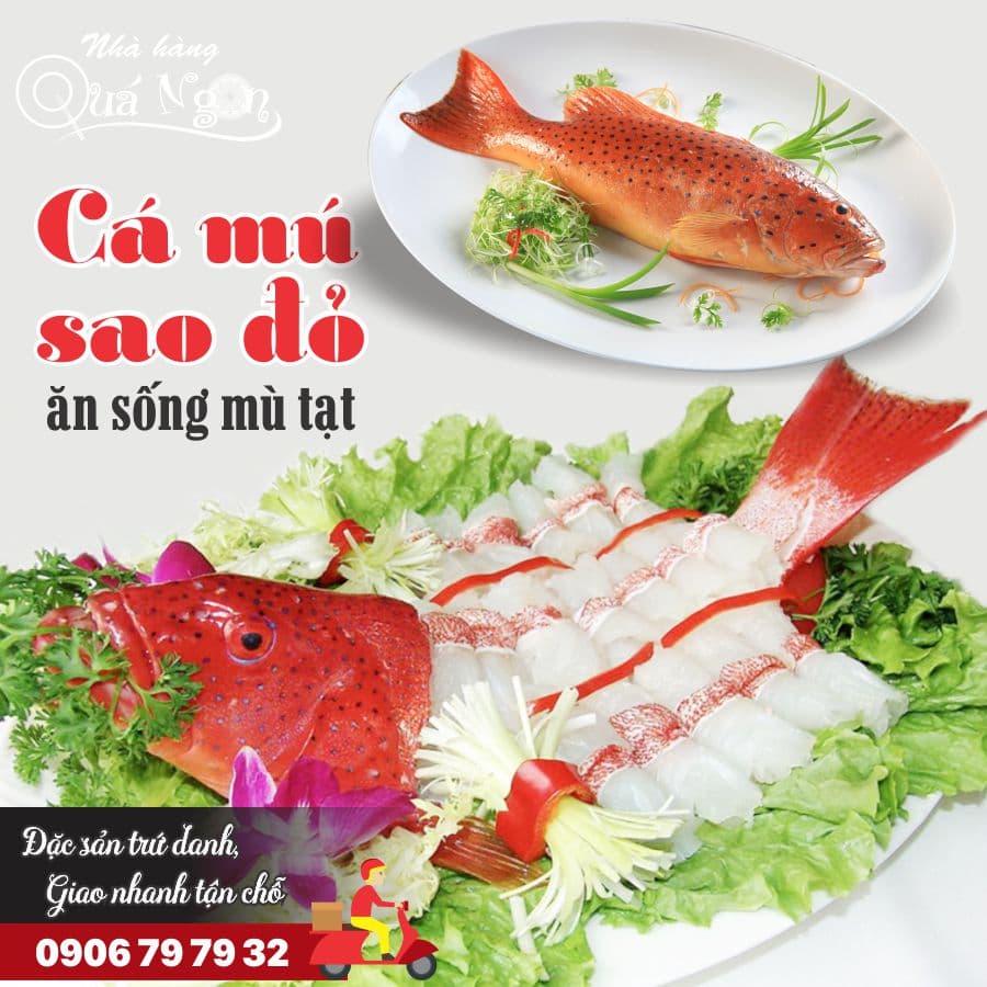 Thịt cá mú sao đỏ chế biến càng đơn giản lại càng giữ được vị ngon thuần khiết. Tại nhà hàng Quá Ngon, chúng tôi sẽ gợi ý cách chế biến nấu cháo hoặc ăn sống chấm mù tạt – nếu. Thịt cá mú sao đỏ dai, ngọt, da cá đỏ béo giòn sần sật, rất thích hợp với việc ăn sống chấm mù tạt – đây sẽ là cách ăn cực bắt vị giác dành cho những thực khách sành ăn và thích hương vị mạnh. Phần còn lại nấu cháo, vị ngọt thanh và hương thơm quyến rũ, làm ngây ngất người thưởng thức.