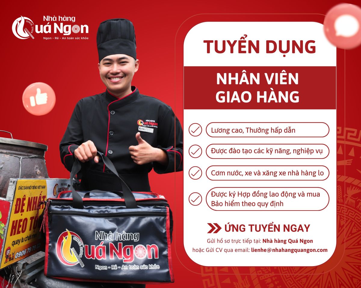 Do nhu cầu phát triển, Nhà hàng Quá Ngon tuyển dụng NHÂN VIÊN GIAO HÀNG với thông tin hấp dẫn như sau: