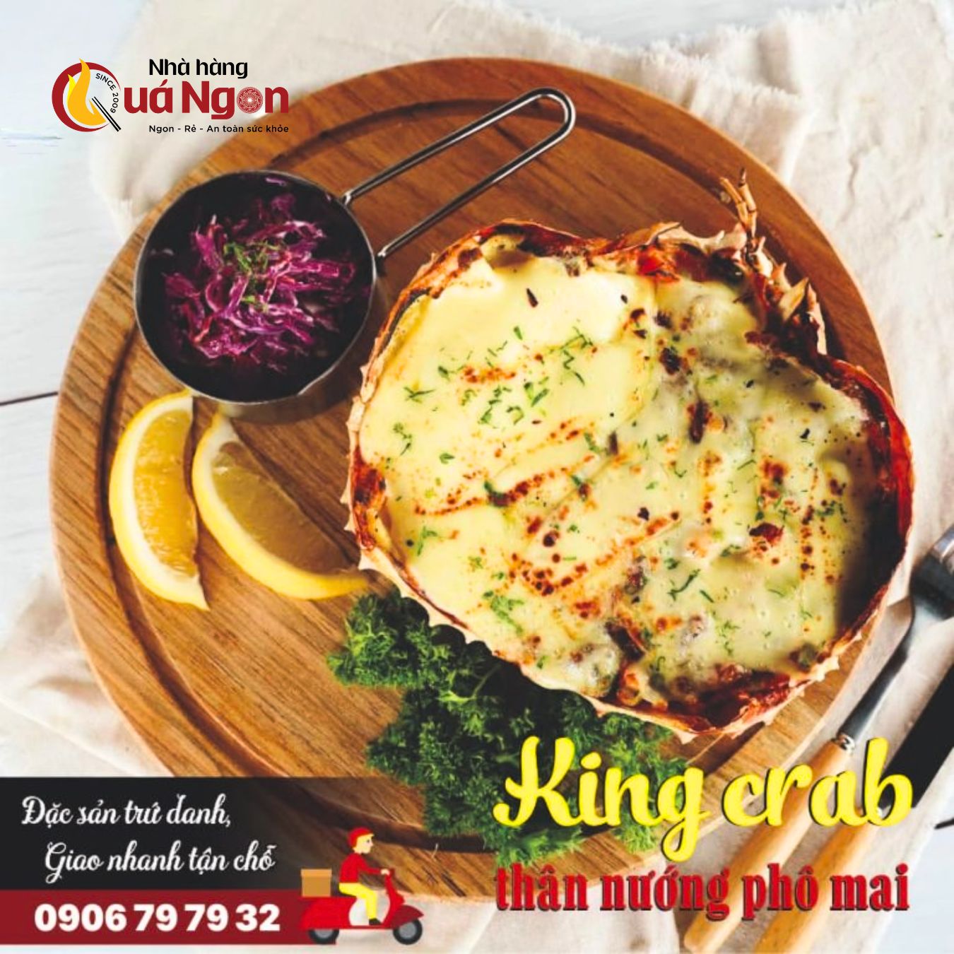 Tại Nhà hàng Quá Ngon, cua King Carb được chế biến thành 3 món thượng hạng: Tiết canh + Thân nướng Phô mai + Chân Hấp cách thủy/Nấu lẩu Tứ Xuyên. Đảm bảo mỗi món ăn sẽ đem đến cho khách hàng một hương vị đặc biệt.