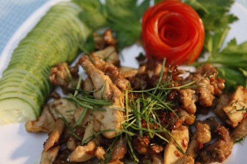 Món gà đông tảo xào khói