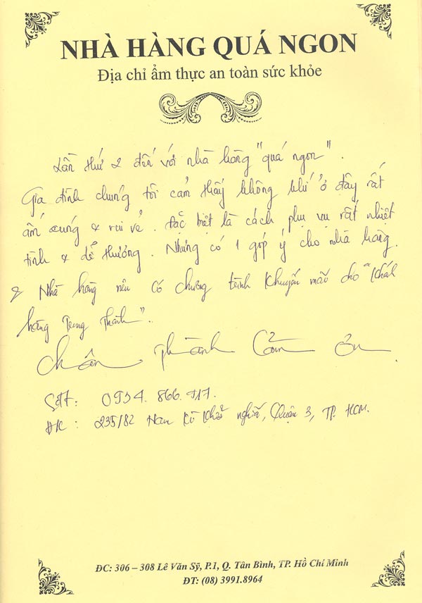 Bất cứ ai trong chúng ta cũng đều mong muốn tổ chức một buổi tiệc hoàn hảo cho sự kiện trọng đại tiệc của mình. Nhưng làm thế nào để khiến nó trở nên thật long trọng, đáng nhớ và để lại nhiều dấu ấn tốt đẹp trong lòng các quan khách là điều mà mọi người đặc biệt quan tâm. Không phải ai cũng có thể lựa chọn được đúng địa điểm. Hãy đến với  Nhà Hàng Quá Ngon để cảm nhận sự hài lòng của chúng tôi đến khách hàng.