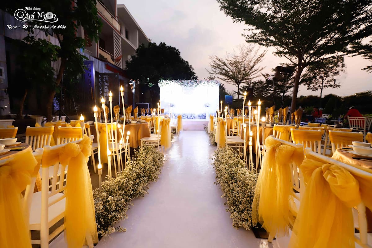 Hôn lễ mùa hè mang màu sắc nóng bỏng, rực rỡ và nồng cháy của một tình yêu mãnh liệt. Để bữa đại tiệc thành hôn thêm phần trọn vẹn và hoàn hảo, bên cạnh hương vị tình yêu sẽ không thể thiếu hương vị ẩm thực từ những món ăn đặc sắc, hấp dẫn. Đâu nhất thiết chỉ có nhà hàng mới có phong vị ẩm thực thượng hạng, bạn có thể đặt món ăn tại nhà cho hôn lễ mùa hè của mình với một màu sắc hoàng gia, trang trọng không thua kém bất kỳ nhà hàng nào với dịch vụ đặt tiệc tại nhà Quá Ngon.