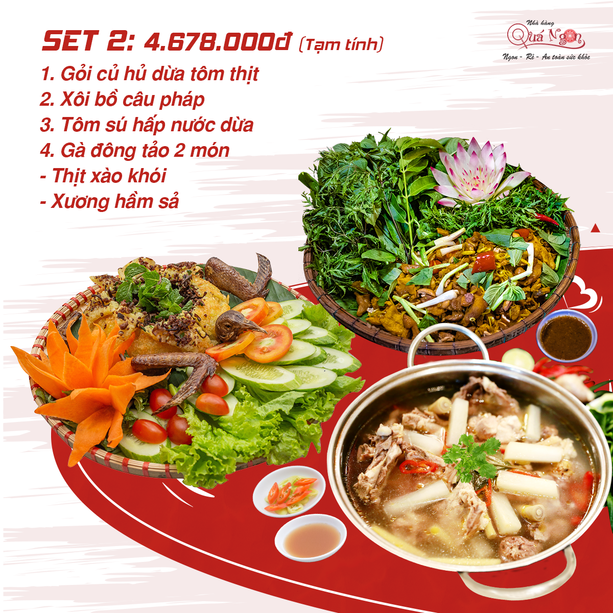 Dưới đây là một số thực đơn tiệc tất niên công ty được gợi ý từ nhà hàng Quá Ngon dành cho tiệc bàn 10 người:
