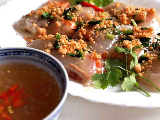 – Bánh dùng kèm với chả lụa, nem hoặc chả tôm và nước mắm ngọt thêm ít đồ chua cho hấp dẫn.