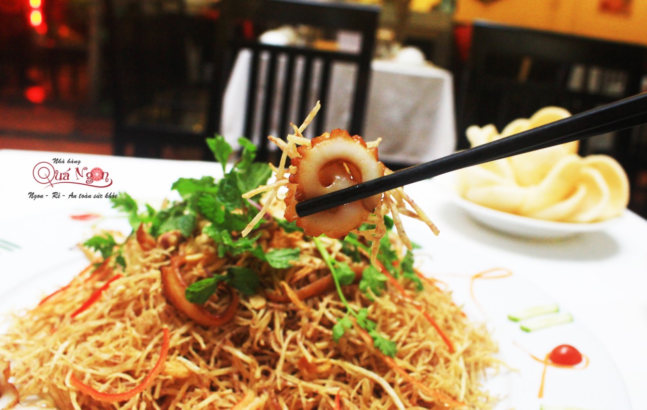 Mang món gỏi tuyệt ngon về nhà, vốn là thực đơn tại các nhà hàng sang! Khoai môn thái sợi chiên giòn tan, vừa béo thơm vừa giòn sựt, được trộn nước sốt gỏi chua dịu, ngọt nhẹ, cay cay và rất thơm. Dùng cùng mực mềm, thấm vị, kết hợp hoàn hảo với khoai môn về hương vị lẫn màu sắc của món ăn.