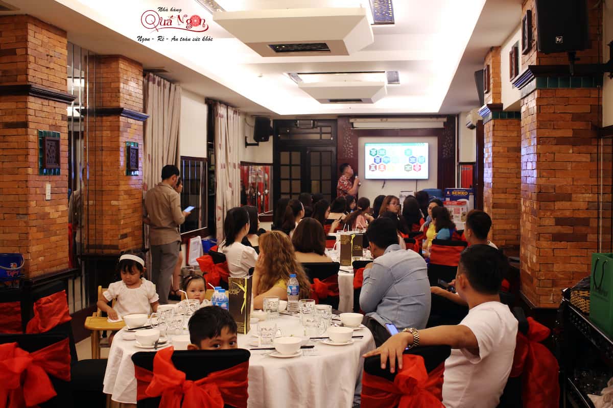Có một câu nói đùa mà khách hàng Quá Ngon đã từng nói: “Nhà hàng Quá Ngon không chỉ “ngon” ở món ăn mà còn “ngon” ở cách phục vụ.” Thật vậy, cung cách phục vụ tận tình, chu đáo đã làm hài lòng rất nhiều thực khách khi sử dụng dịch vụ đặt tiệc liên hoan cuối năm của nhà hàng Quá Ngon. Không chỉ những bạn phục vụ, toàn thể nhân viên từ chuyên viên tư vấn đến nhân viên bảo vệ đều thể hiện sự chuyên nghiệp khi tiếp xúc với khách hàng, từ đó để lại ấn tượng tốt đẹp trong lòng quý khách.