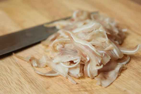– Pha nồi nước lạnh với chút giấm, rồi thả tai vào luộc chín, vớt ra bát.