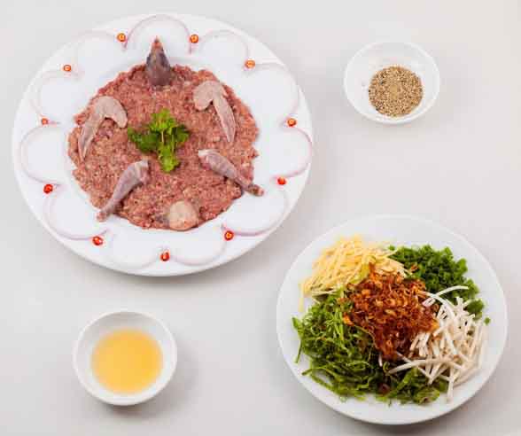 Dùng chung với giá sống – hành lá sắt nhuyễn cắt sợi hoặc bằm nhuyễn.