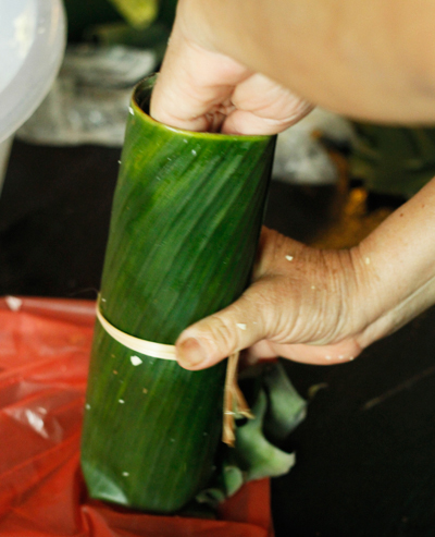 Bước 4: Cách gói chả lụa chay