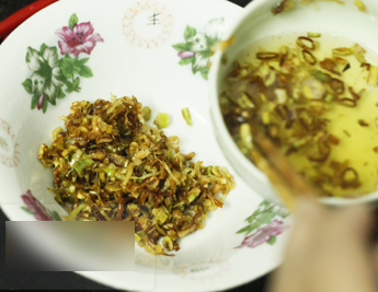 Bước 2: Lọc lấy dầu đã phi, còn phần hành không dùng tới, bạn có thể để dành làm gia vị cho các món khác.