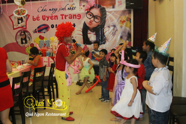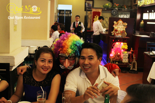 Sự vui nhộn còn được góp vui bởi những chú hề đáng yêu, ngộ nghĩnh và đặc biệt là cực kì hài hước, chính sự độc đáo này đã tạo nên sự thích thú cho các em nhỏ khi được tổ chức tiệc sinh nhật tại Nhà hàng Quá Ngon.