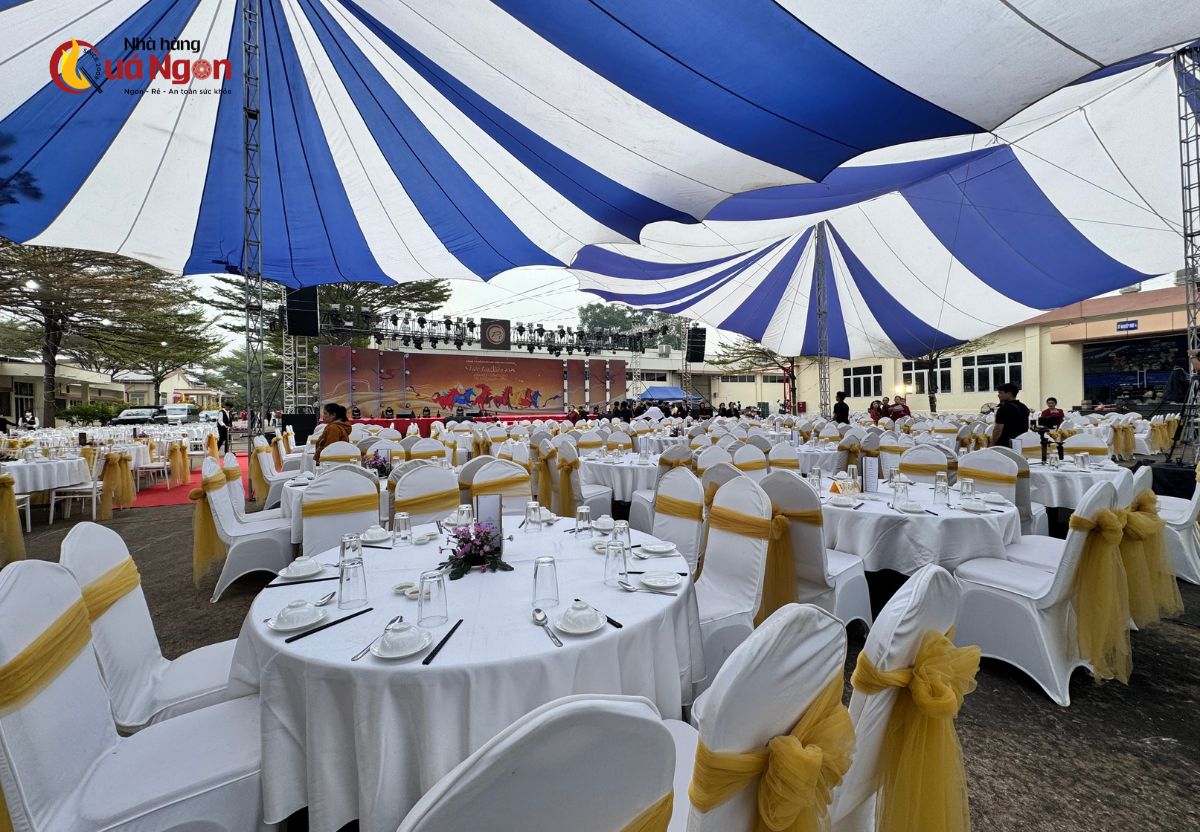Kinh nghiệm điều phối lên đến 500 bàn: Chúng tôi sở hữu quy trình vận hành bài bản, đủ năng lực đáp ứng những sự kiện lớn cho hàng ngàn khách mời tại các khu công nghiệp, doanh nghiệp hoặc trung tâm hội nghị.