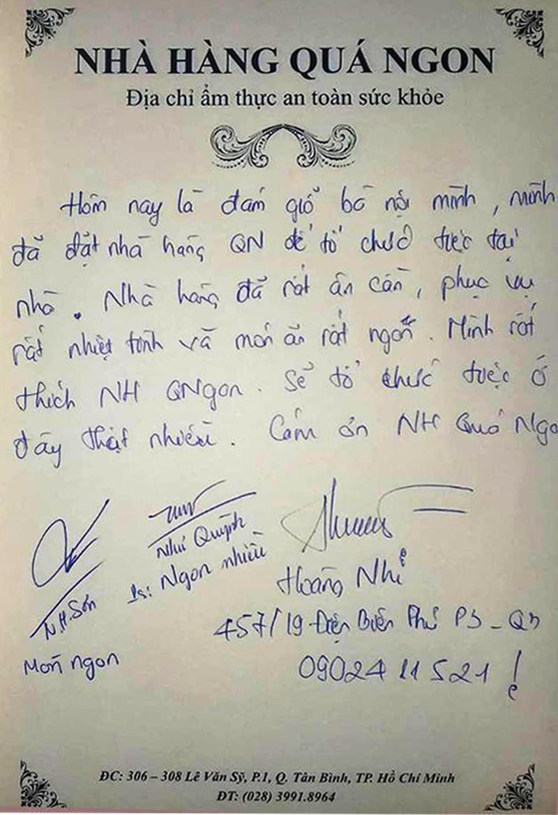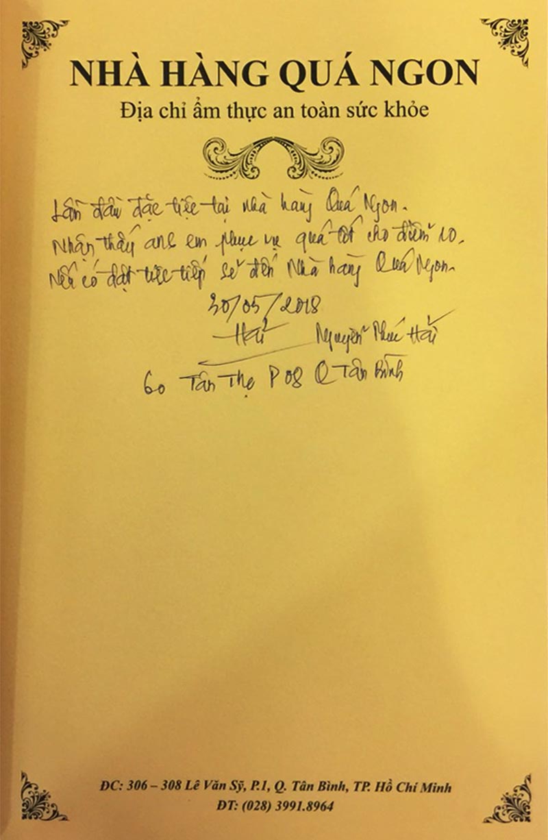Khách hàng hài lòng về dịch vụ của Qúa Ngon ngay từ lần đặt tiệc đầu tiên