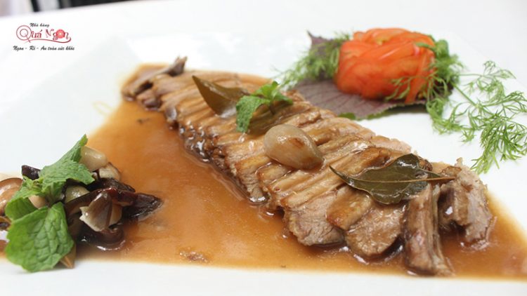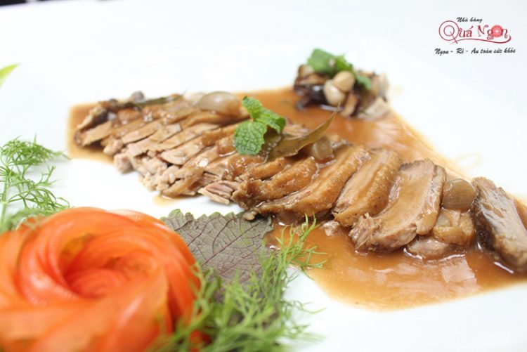 Khác với các món ăn Việt Nam chú trọng về sự đậm đà của gia vị và nước chấm, thì ở các nước phương Tây, phần nước sốt đóng vai trò quan trọng. Ức vịt sốt rượu vang là món ăn điển hình mà thực khách có thể dùng thử khi đến nhà hàng Qúa Ngon.