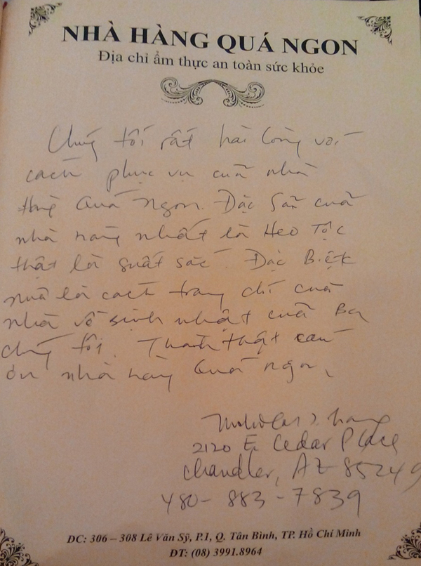 20 Th6 Nhận định khách hàng về nhà hàng quá ngon 20.06.2016 Tin Tức 0 Comments 0 Share Facebook Google+ Twitter Pinterest LinkedIn Cảm ơn quý khách rát nhiều. Mong quý khách sẽ quay lại nhà hàng của chúng tôi.