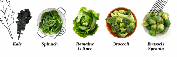 Vitamin K: Làm cho máu của bạn có thể đông máu đúng cách. Đặc biệt có nhiều trong các loại rau cải như: cải xoăn, rau diếp, bông cải xanh, bắp cải…