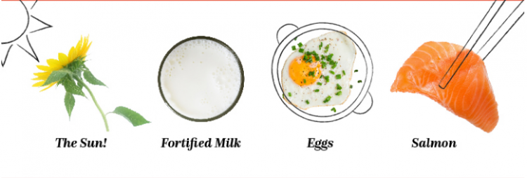 Vitamin D: Giúp cơ thể bạn sử dụng canxi tốt hơn và thúc đẩy sức khoẻ xương. Trứng, cá hồi, hạt hướng dưng, sữa là nguồn cung cấp Vitamin D dồi dào nhất.