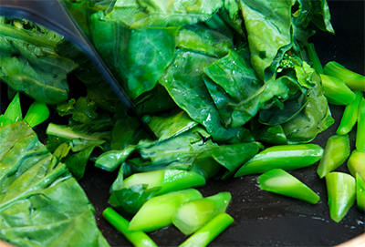 Bước 4: Cho rau vào chảo dầu xào chín vớt ra