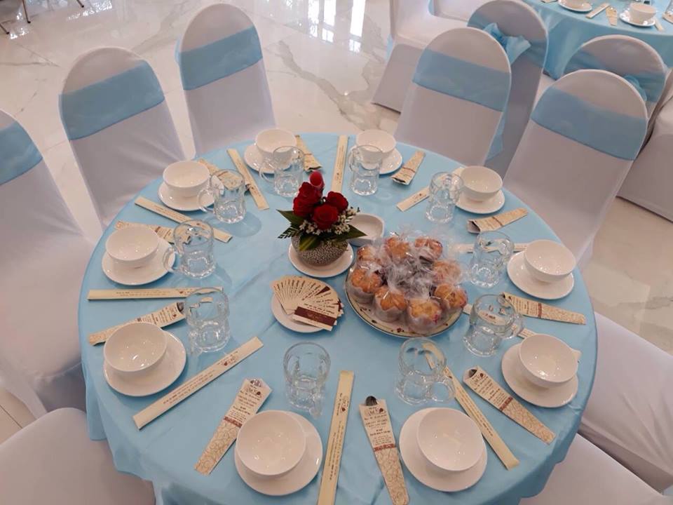 - Bàn, ghế, ly, chén, khăn lạnh cho buổi tiệc