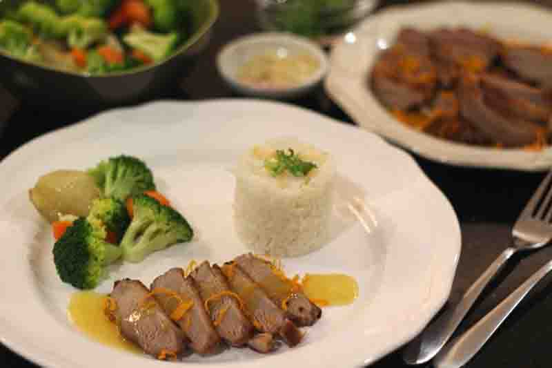 Thịt vịt xốt cam mềm thơm với phần xốt chua chua ngọt ngọt, dùng cùng cơm nóng và ít rau xanh sẽ rất ngon. Nào các bạn hãy cũng với đầu bếp nhà hàng Quá Ngon chuẩn bị cho bữa cơm gia đình mình nhé!