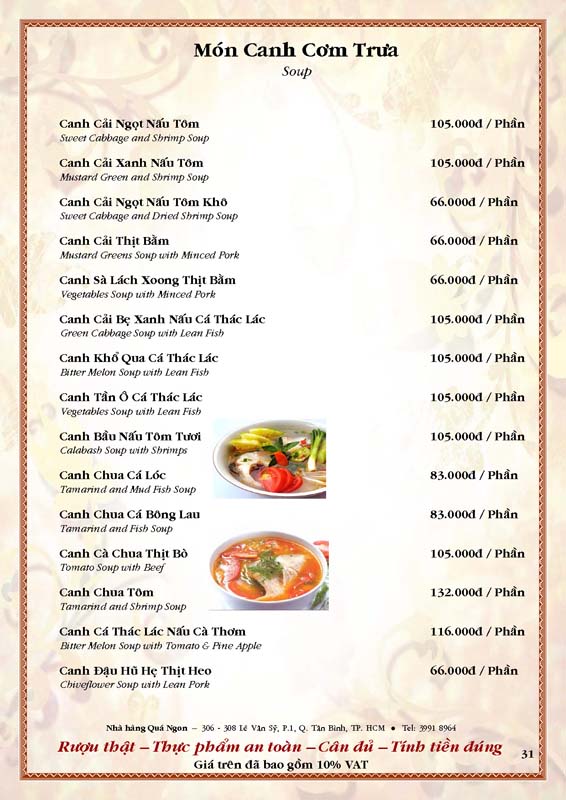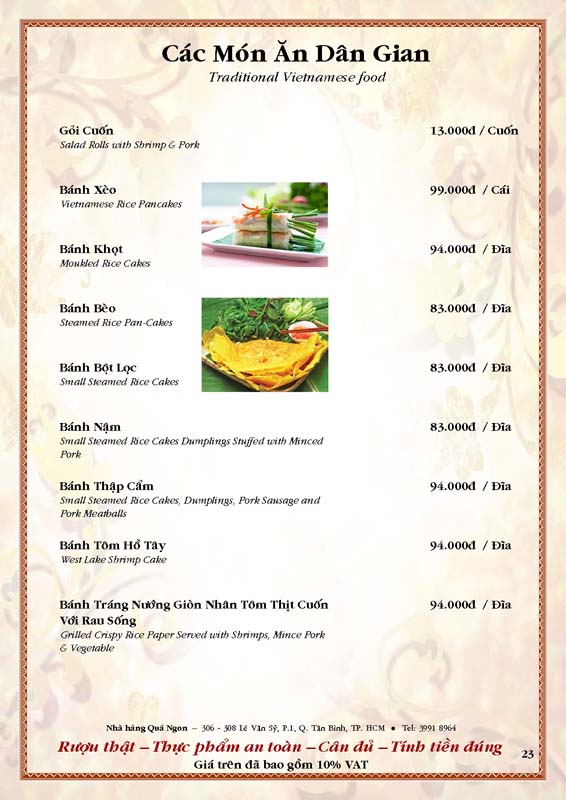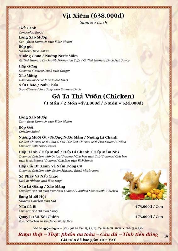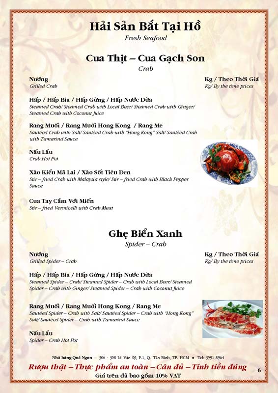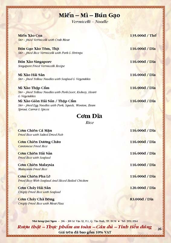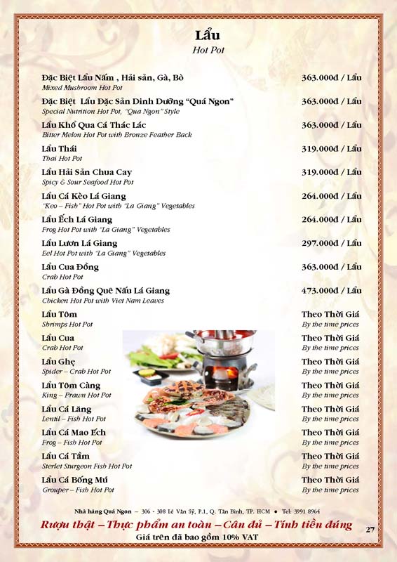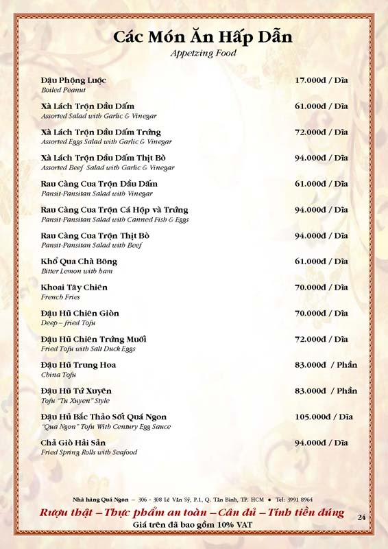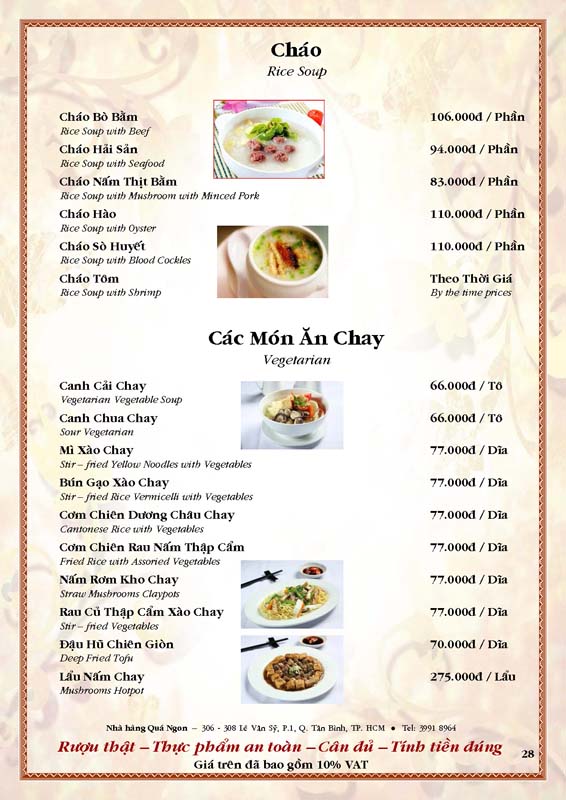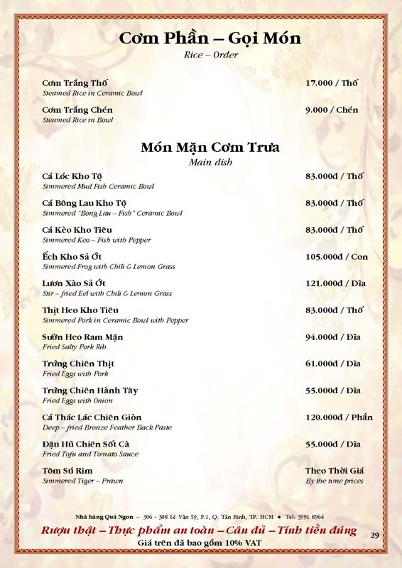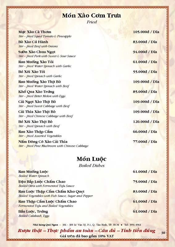 THỰC ĐƠN TIỆC TẠI NHÀ HÀNG
