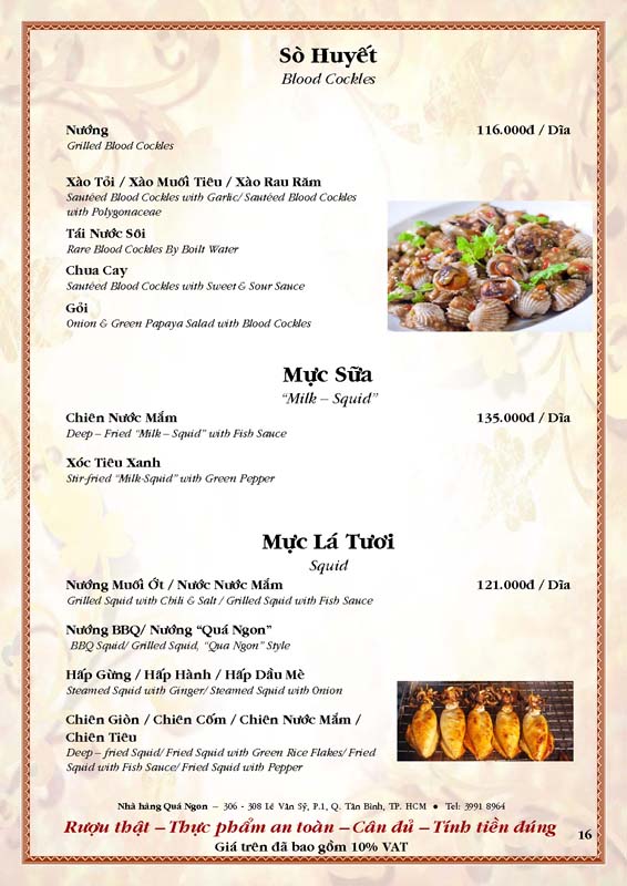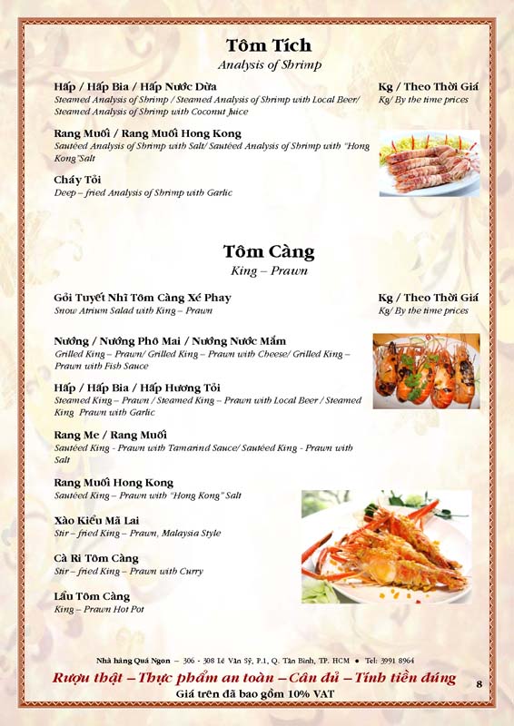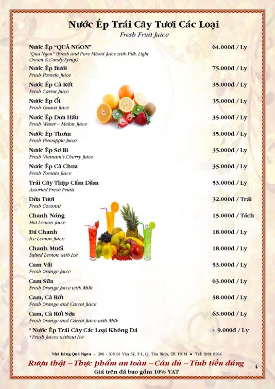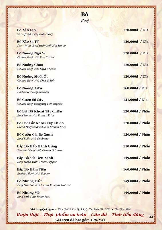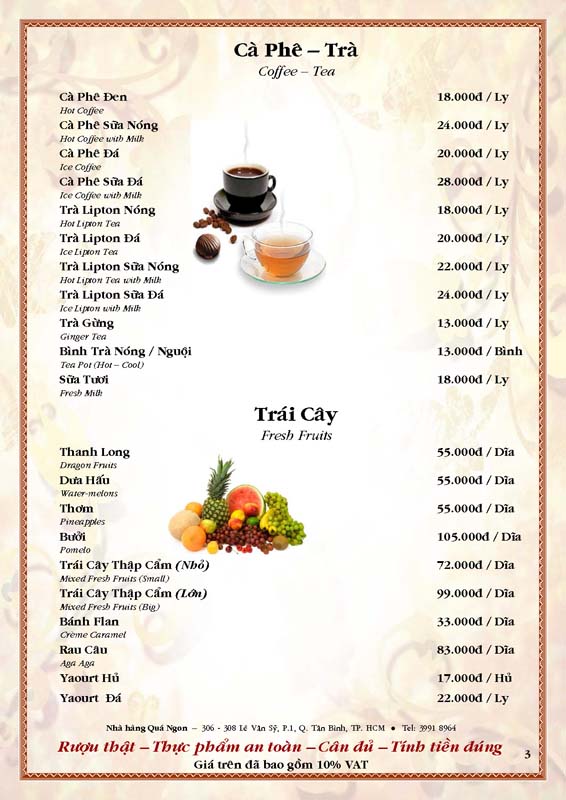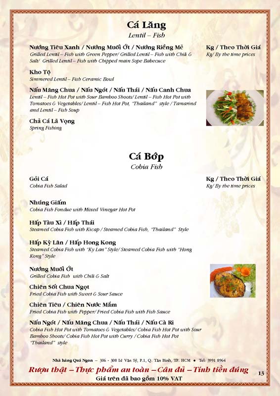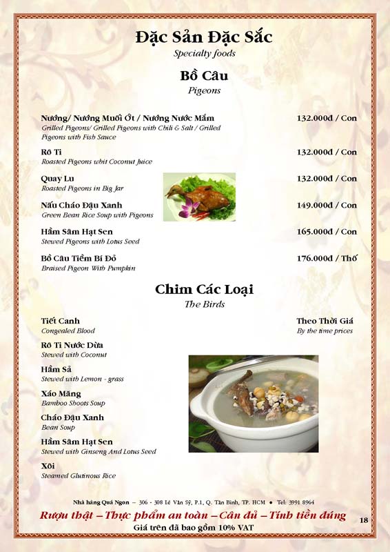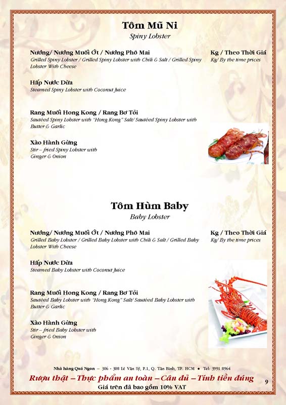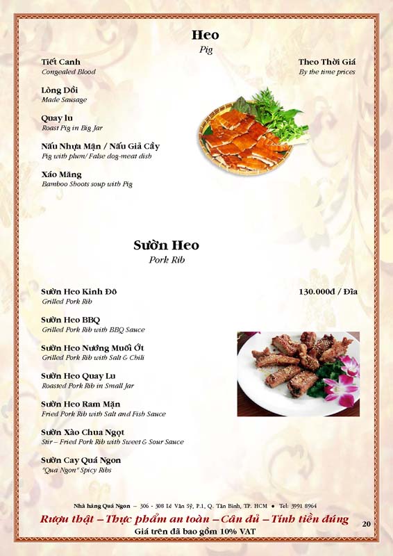 THỰC ĐƠN TIỆC TẠI NHÀ HÀNG