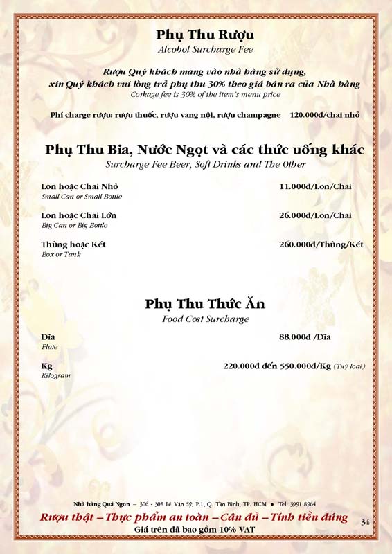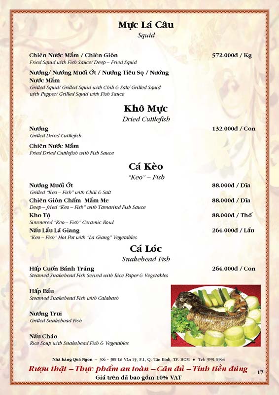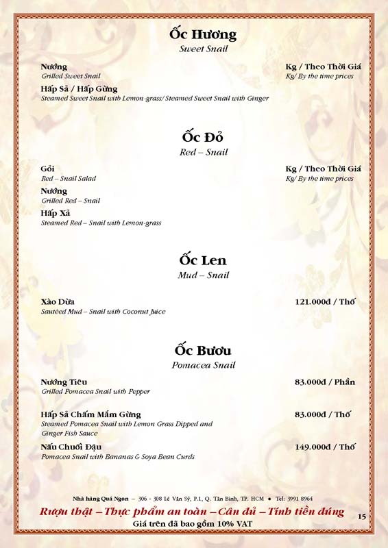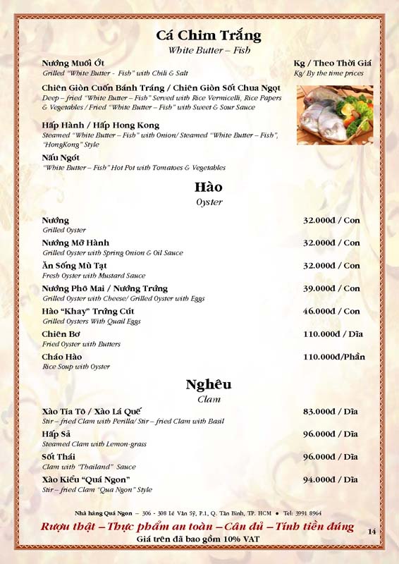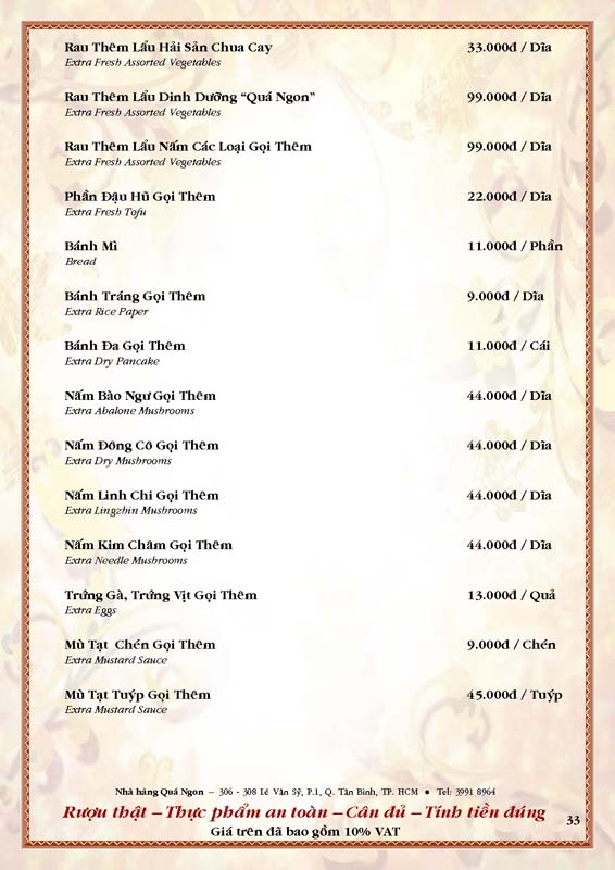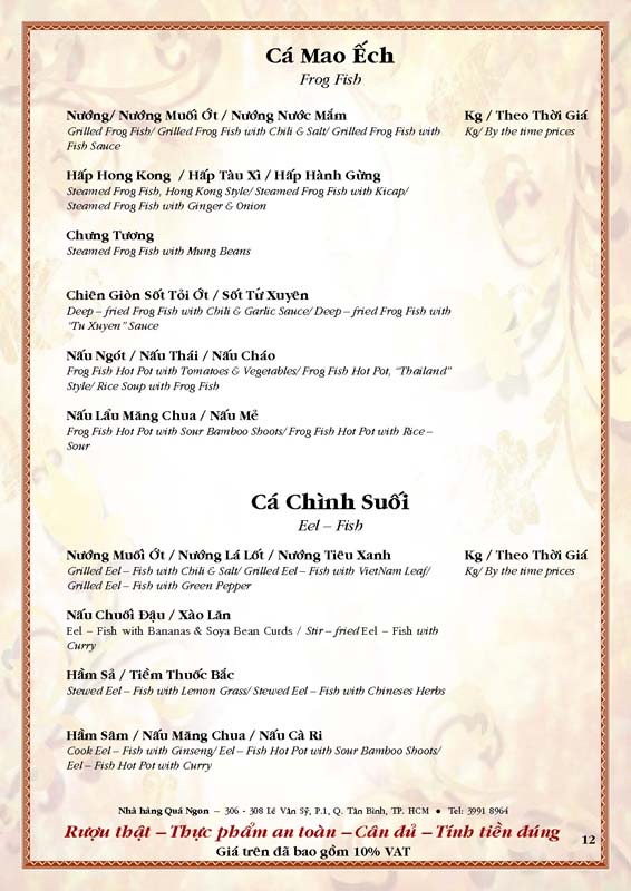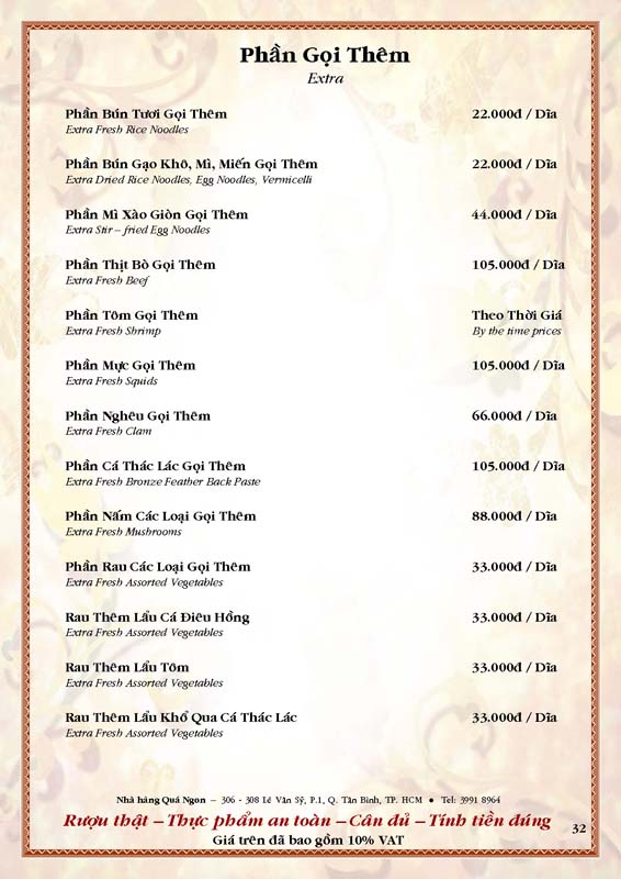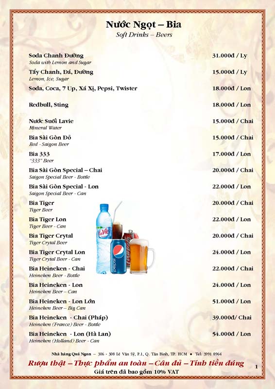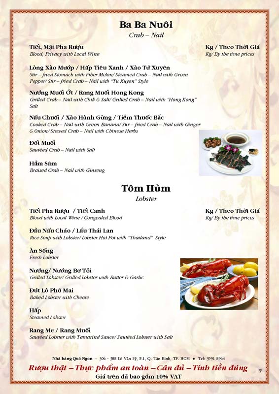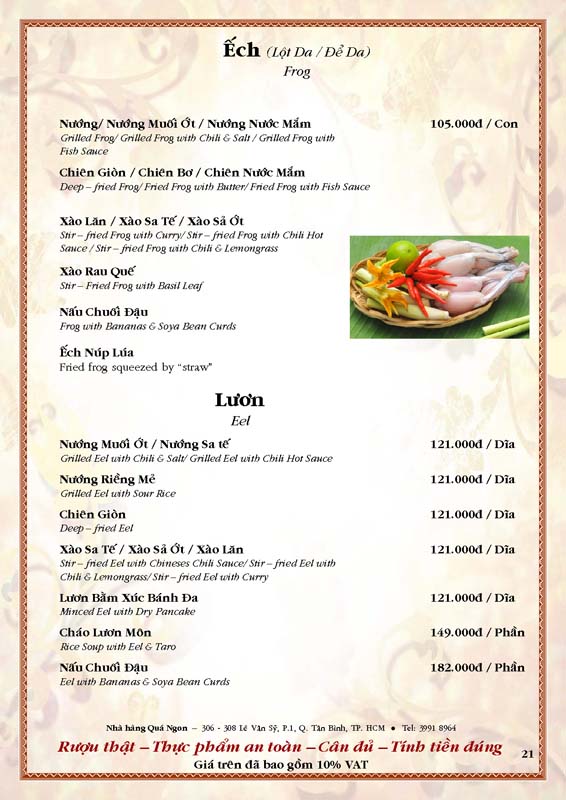THỰC ĐƠN TIỆC TẠI NHÀ HÀNG