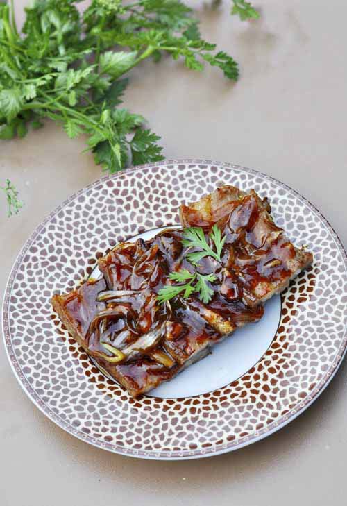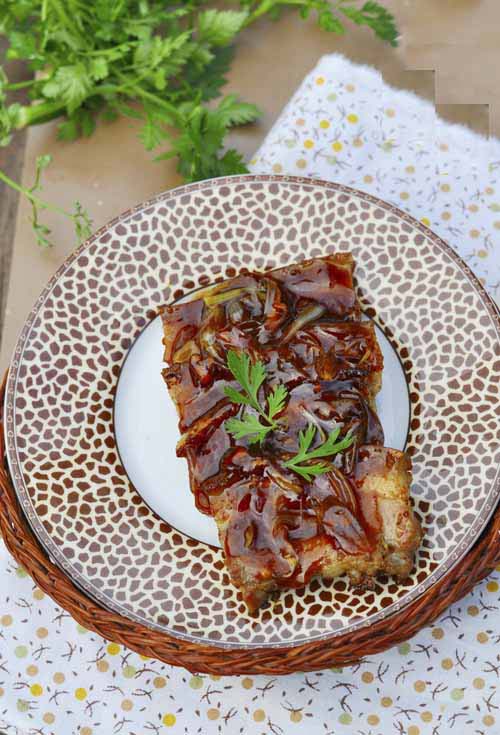– Thịt nướng chín, cắt miếng vừa ăn, rưới nước sốt lên trên.