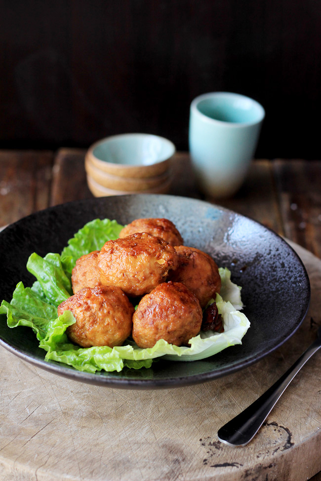 Lấy thịt viên ra đĩa, rưới nướt xốt còn lại trong nồi, dùng với cơm trắng.