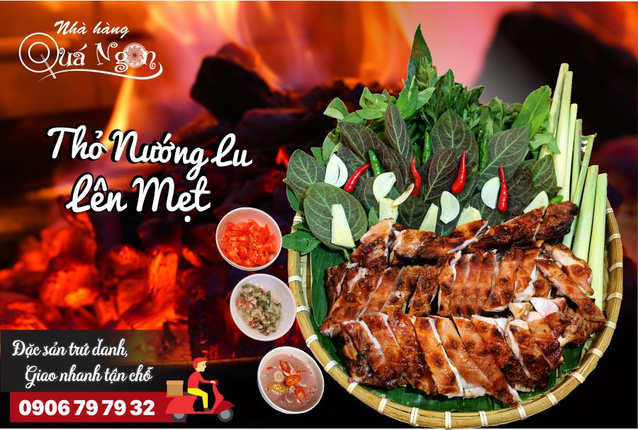 💥 Đặc sản THỎ NƯỚNG LU LÊN MẸT của Nhà hàng Quá Ngon được đầu bếp chế biến công phu, ướp với các gia vị thiên nhiên hảo hạng, nướng chín từ từ trong lu đất với than hồng nên khi món ăn hoàn thành và xé phay trình bày lên mẹt tại nhà khách, thịt nóng hổi, màu sắc bắt mắt, hương vị đặc trưng, dậy mùi thơm xao xuyến.